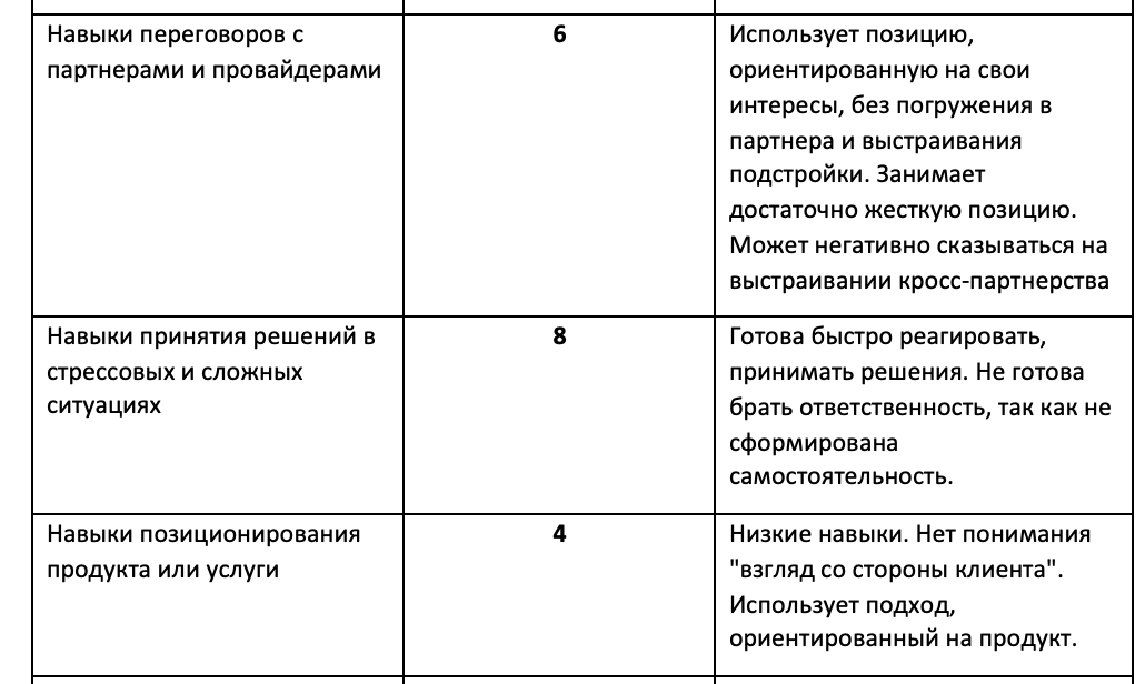 В анкете хорошо видно, как сотрудники мыслят. Например, если предложить людям решить короткий мини-кейс, это покажет также пробелы в их компетенциях, потенциал роста.